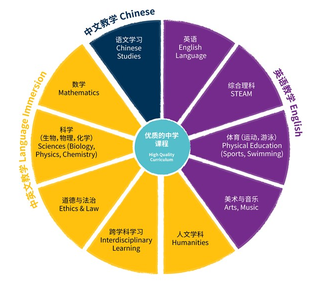 初中阶段作为国家义务教育的延续,延续国家义务教育课程的同时,融入优质的国际课程的教育理念和教学方法,为高中的国际课程学习打下扎实的基础。课程围绕中国国家课程的核心内容,覆盖诺德安达教育集团为中国双语学校量身定制符合中学生思维和学习特点的探究式学习和跨学科主题学习课程的学习目标。采用先进的教学方法,既保障学生在独立学科的深度学习,同时提供系统的学习机会让学生在跨学科的平台上获得兴趣激发、探究思考、动手实践、反思总结的综合科研能力。而兼顾学生交际和学术英语能力提升的英语学习模式(学科内容与语言融合的学习模式)将确保学生能在10至12年级用英文完成课程学习。